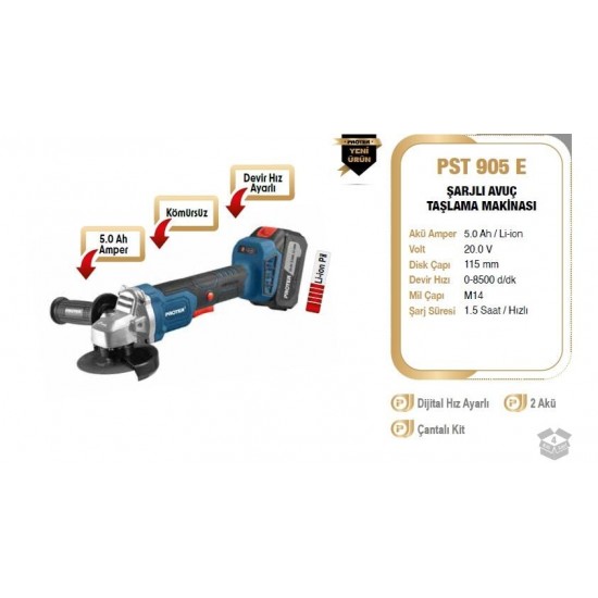 Proter Pst 905 E Akülü Avuç Taşlama 20V 5.0 Amper